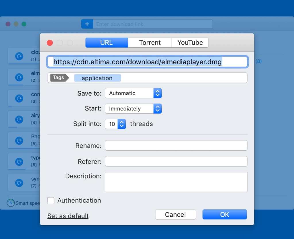 Please, note that this version of Folx doesn’t support downloading videos from YouTube. To be able to transfer YouTube videos, please get the special build from the developer’s web site.